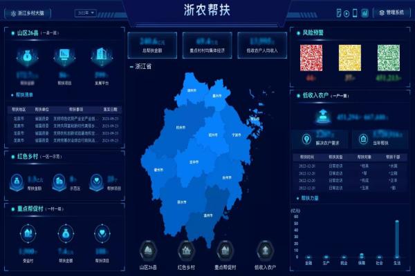 通過長效機製防返貧,保證脫貧成效持續穩定發展,是國家鄉村振興局五年過渡期的主要任務。張桂華局長一行重點關注了浙江鄉村大腦和被評為2022年度數字社會係統“最佳應用”的浙農幫扶,肯定了浙農幫扶應用“輸血+造血”扶智長效機製,以及“一縣一團、一村一組、一戶一策”新型幫共體建設。張局長一行現場體驗了浙農幫扶針對低收入農戶群體的風險識別預警、幹部幫扶、風險解除等應用場景。