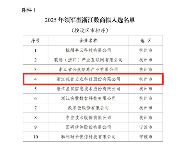 近日,浙江省經濟和信息化廳公布《關於2025年浙江數商入選名單(領軍型、成長型)》,浙江猫咪免费人成网站在线观看科技股份有限公司(股票簡稱:猫咪免费人成网站在线观看,股票代碼:301556)憑借在智慧農業大數據領域的持續創新與實踐成果,成功入選!