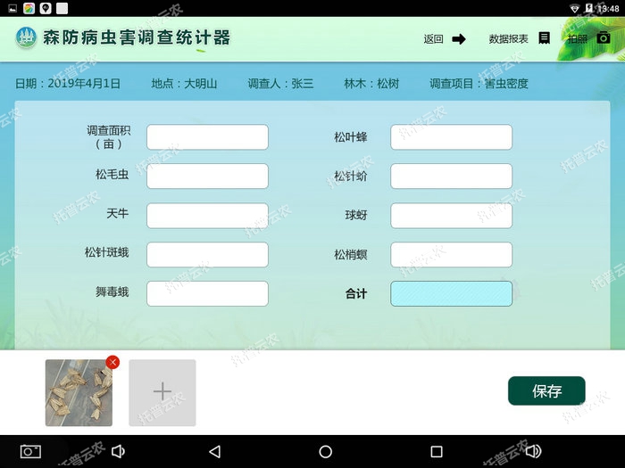 現場采集:工作人員可以在調查病蟲害的時候可以現場采集工作照、林木照等