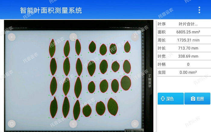 智能葉麵積測量儀是種采用圖像處理技術來對植物葉麵積進行精準測量的科研儀器!係統采用11寸高清全彩觸摸屏,能通過對植物葉片進行拍照,利用算法即可一鍵測量出植物葉片葉麵積、周長等相關表型參數。